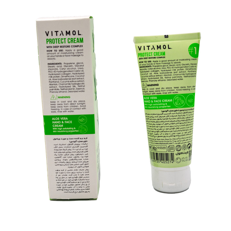 کرم مرطوب کننده دست و صورت ویتامول مدل آلوئه ورا مناسب انواع پوست حجم 75 میلی لیتر